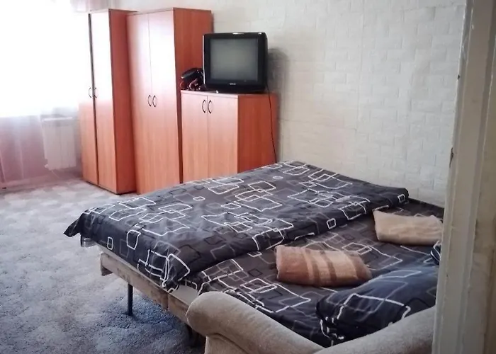 The apartment lies in the Holosiivskyj district of Kyiv, within a 6-km distance of the Golden Gate.